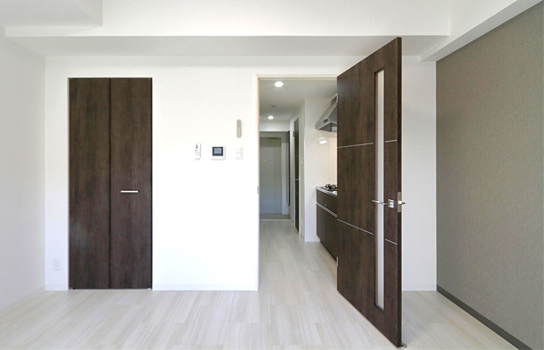 玄関横のトランクルームは、名前の通り住戸の横にあることが多いです。扉の横やメーターボックスと併設されていて、住戸と並ぶ形でスペースが作られています。