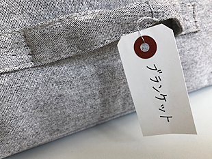 素材によってはラベルが貼れないものもあります。そういう場合はタグを使いましょう。たとえばシーズンオフの毛布をしまっておくソフトケース。こういうものは針金つきのタグ(荷札)を持ち手部分につけると、見た目がかわいく、中身も一目でわかります。